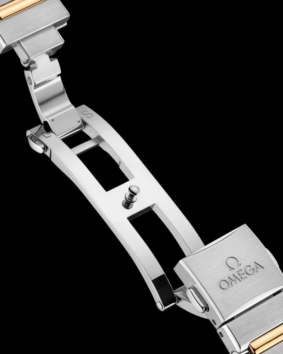 L’esthétique reconnaissable et intemporelle de la collection OMEGA Constellation se caractérise par ses fameuses demi-lunes, la présence des célèbres « griffes » sur la lunette et son bracelet mono-rang.