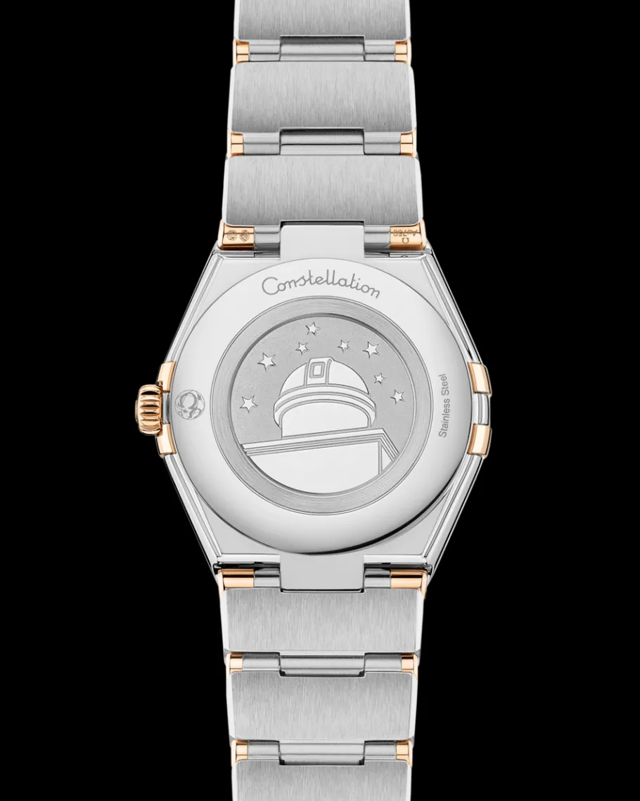 La montre est présentée sur un bracelet mono-rang signature doté d’un système de réglage confort et animée par le calibre OMEGA 4061, dissimulé derrière un médaillon estampé Observatoire Constellation sur le fond de boîte.