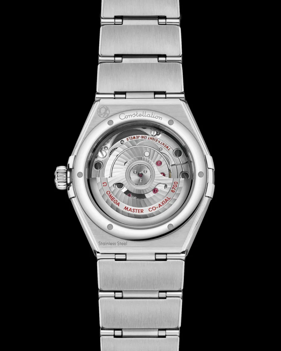 Derrière le fond en verre saphir, cette montre impressionnante est entraînée par le calibre Co-Axial Master Chronometer 8700, qui répond aux plus hauts critères de précision, de performance et de résistance magnétique, certifiés par l’Institut Fédéral Suisse de Métrologie (METAS).