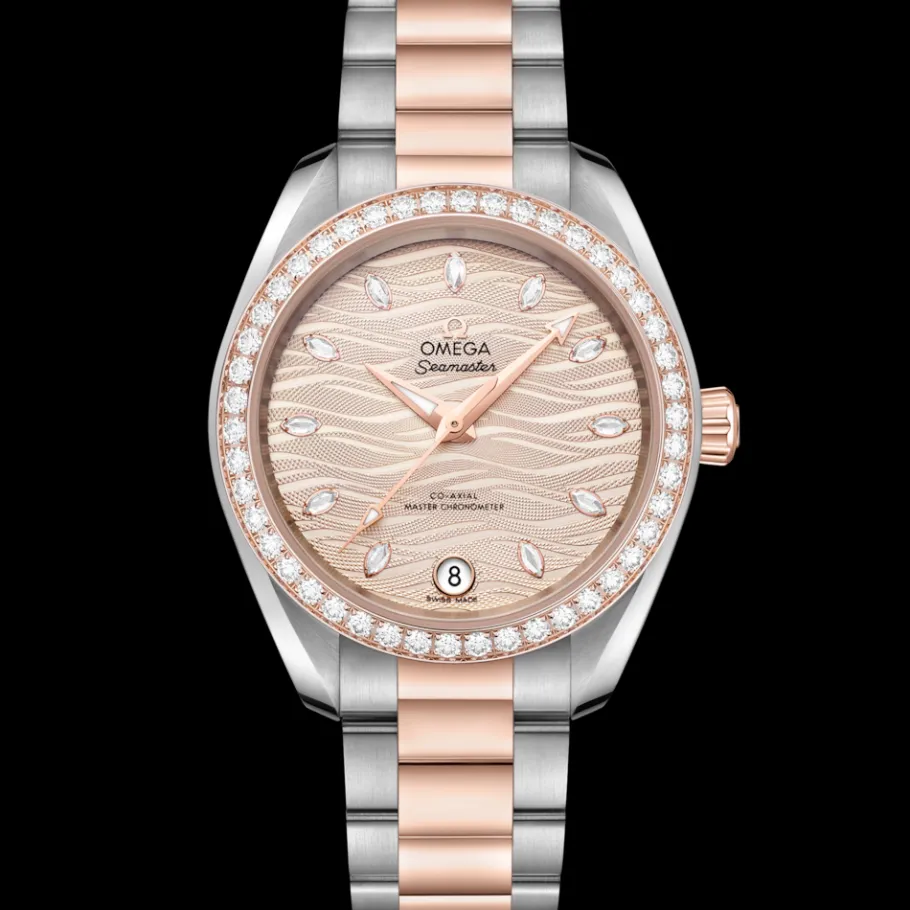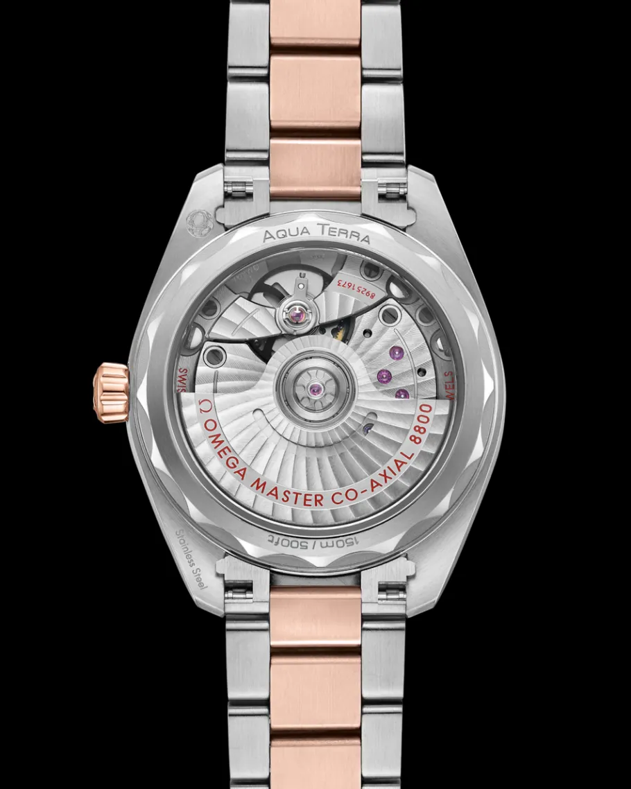 Présentée sur un bracelet intégré en acier inoxydable et en or Sedna™ 18K avec fermoir papillon, la montre est entraînée par le calibre OMEGA Co-Axial Master Chronometer 8800 qui répond aux critères de performance les plus élevés de l’industrie horlogère, déterminés par l’Institut fédéral suisse de métrologie (METAS).