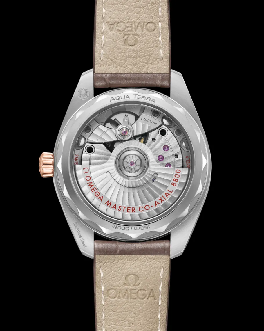 Présentée sur un bracelet en cuir brun-taupe, cette montre est entraînée par le calibre OMEGA Master Chronometer 8800 qui répond aux critères de performance les plus élevés de l’industrie horlogère, déterminés par l’Institut fédéral suisse de métrologie (METAS).
