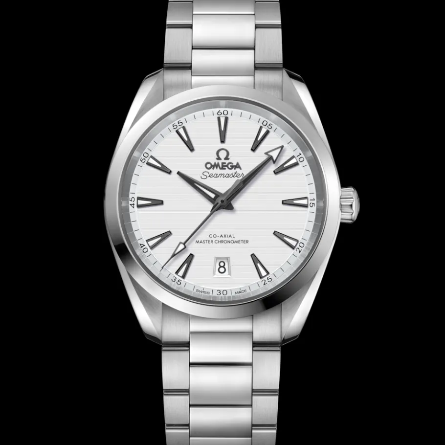 La Seamaster Aqua Terra constitue un magnifique hommage au vaste patrimoine maritime d’OMEGA. Au verso, le boîtier symétrique de 38 mm, façonné en acier inoxydable, est orné d’un motif vagues.