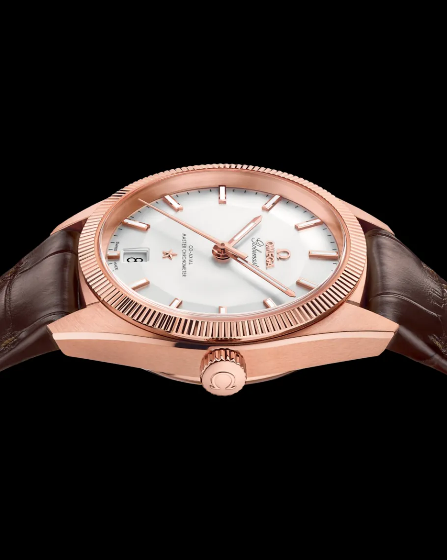 En plus de répondre à un nouveau standard de qualité, son design épuré et captivant la transforme en véritable objet de désir. Sur ce modèle, le boîtier en or Sedna™ 18K est orné d’une lunette cannelée qui entoure un cadran « pie-pan » argenté opalin, un classique inspiré par la première Constellation de 1952.