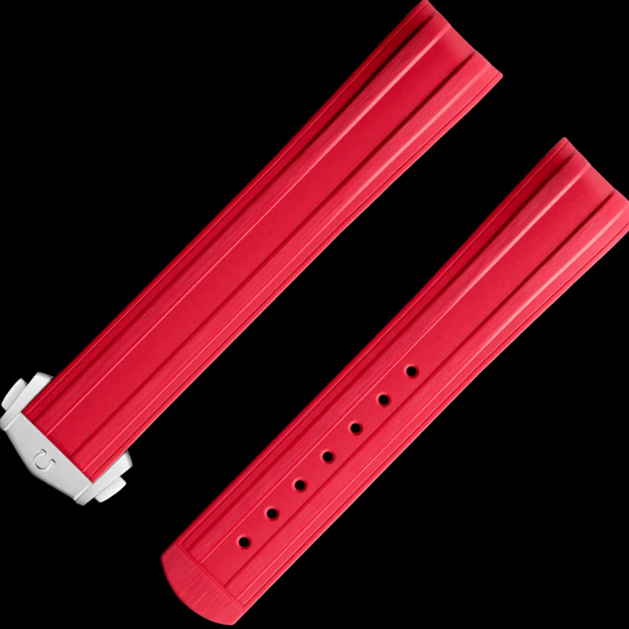 Bracelet de la Seamaster Diver 300M en caoutchouc rouge avec boucle déployante|OMEGA Best