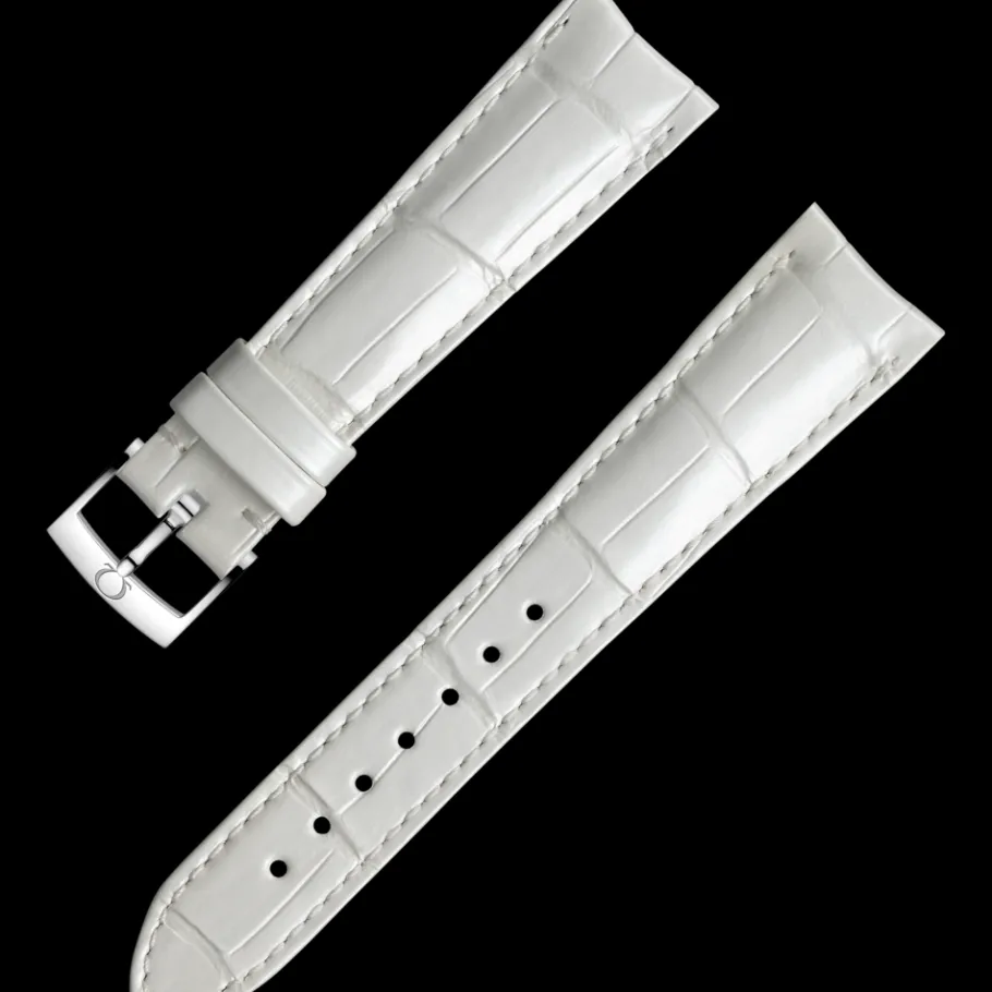 Bracelet en cuir d’alligator blanc avec boucle ardillon|OMEGA Clearance