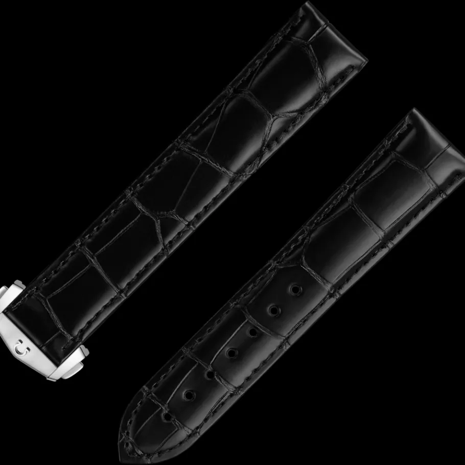 Bracelet en cuir d’alligator noir avec boucle déployante|OMEGA Sale